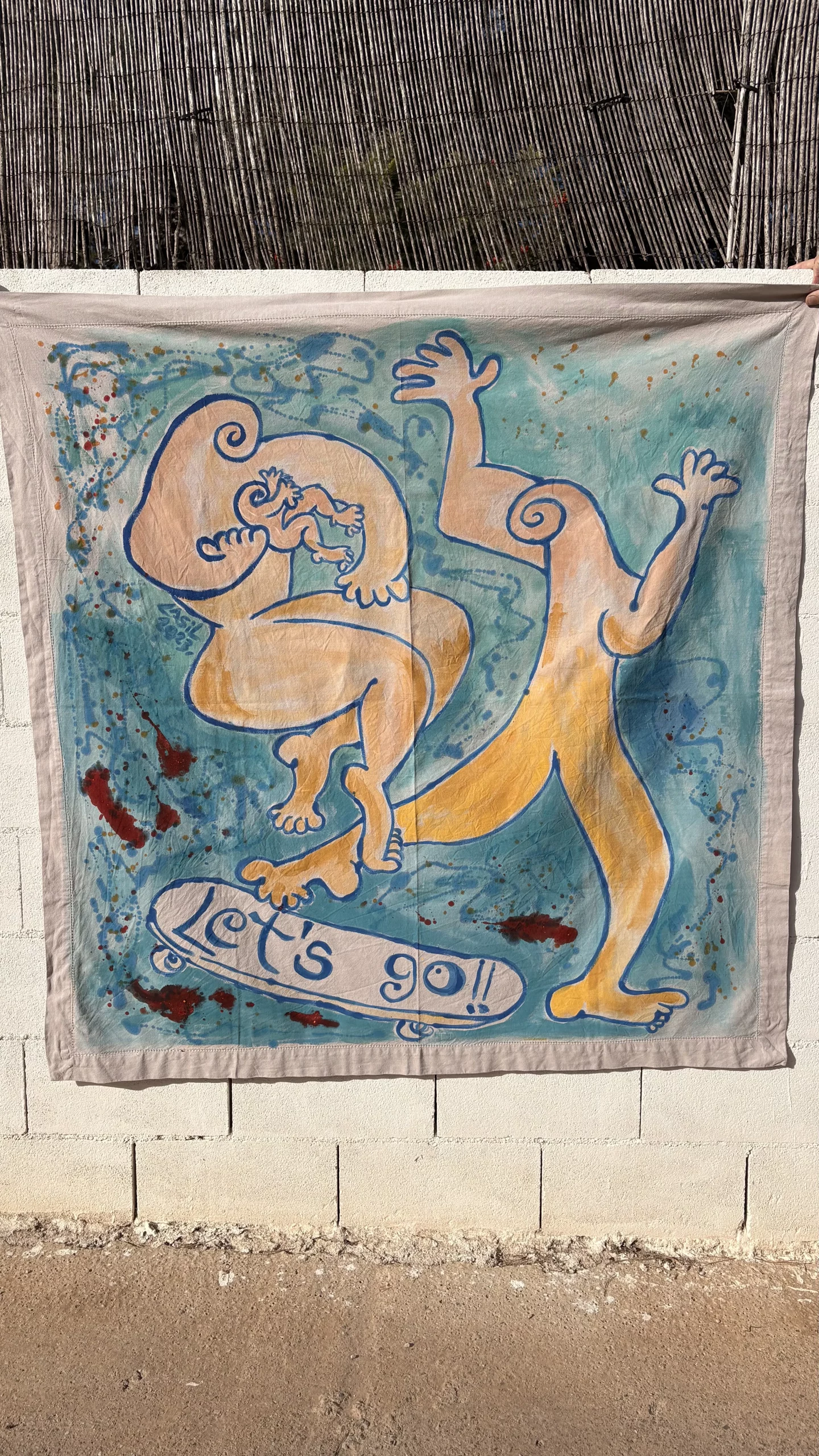 Pintura textil sobre tela.